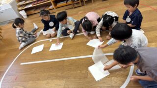 ようちえん日記 2025.10.8 午後のあつまり 午後の時間は・・・?こちらの部屋では「かくれたのだーれ?」のゲームをしているようです。目をかくしているあいだにお友だちが隠れます。誰がいなくなったか分かる?呼んでみるよ!「〇〇くーん!」「はーい!」ジャンプで飛び出しました笑瞬時に誰がいない... 2025.10.08 ようちえん日記