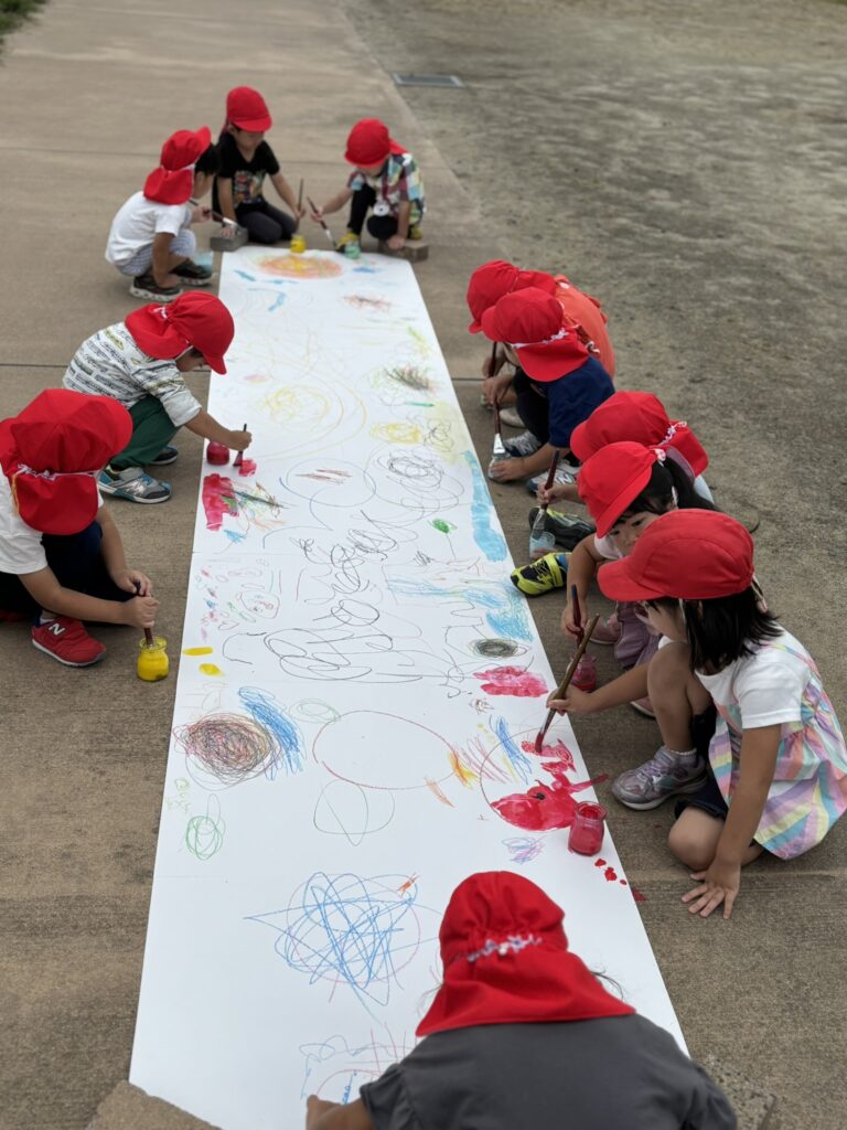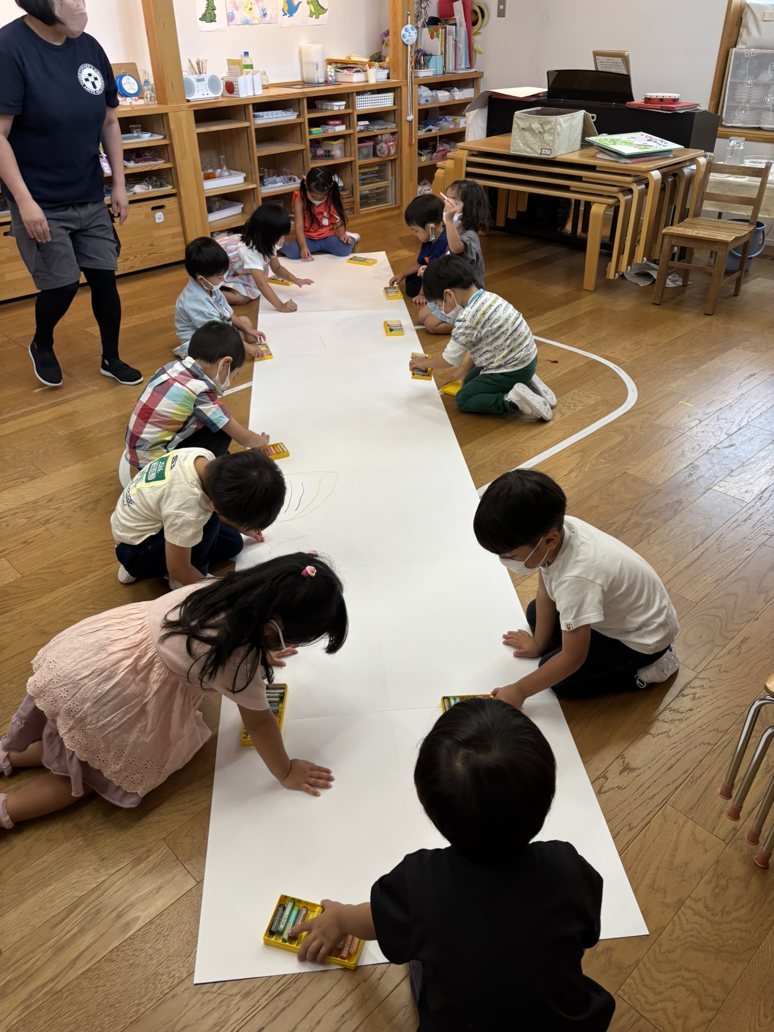 大きな画用紙にクレヨンで
