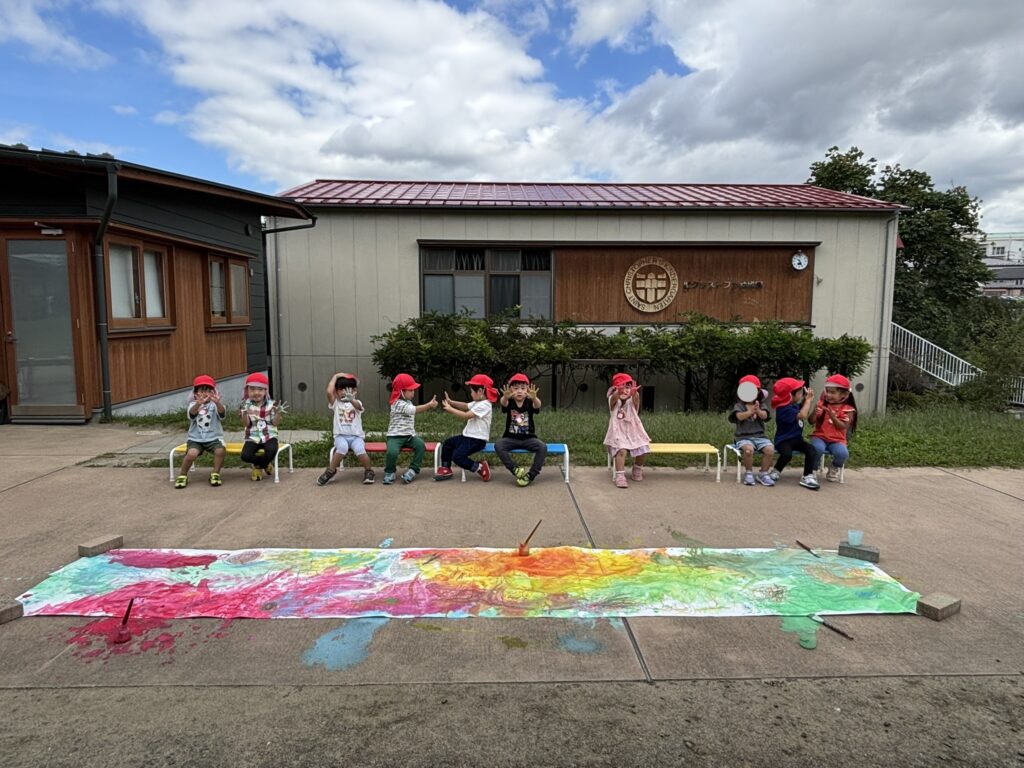 描けた絵は外に持って行って