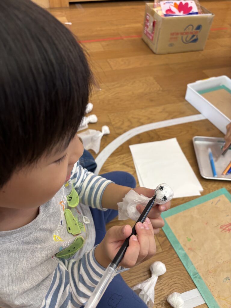 2025.10.10 晴れを願って ようちえん日記 2025.10.10 明日のうんどうかいは雨予報のため延期となりました☔先生たちは子どもたちの意欲が高まった今!させてあげたかった・・・とがっかり😢でも、子どもたちはくよくよしていませんよ。どこの学年からもうんどうかいの歌が聞こえて来ました。黄グループの子どもからは「てるてるぼうずを作ろうよ!」と提案があり早速制作! 次こそは晴れを☀ 願いを込めて☆彡 楽しいうんどうかいができますように!
