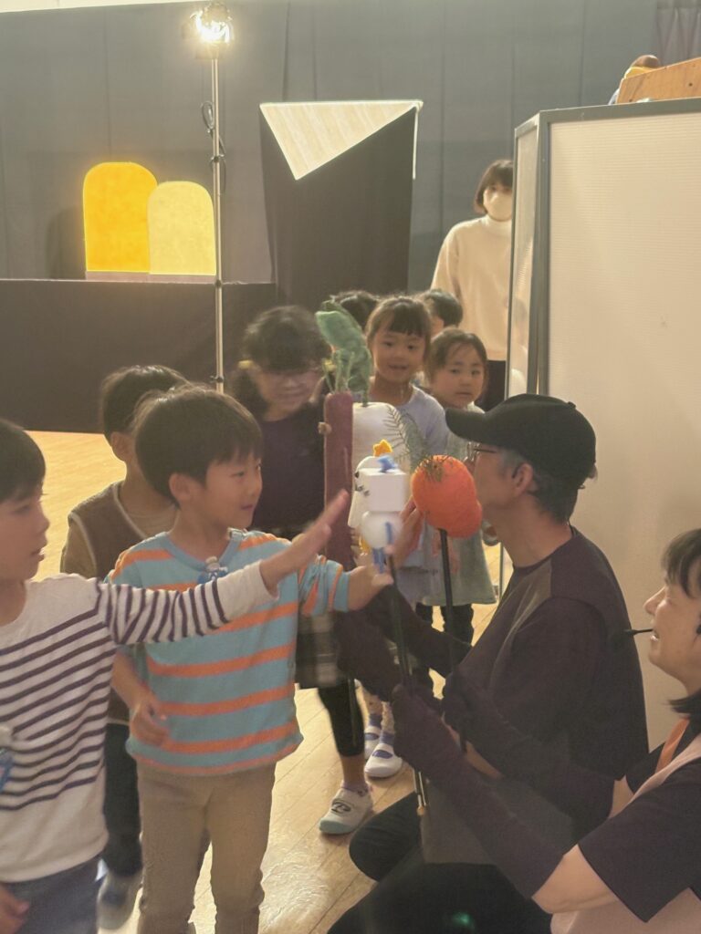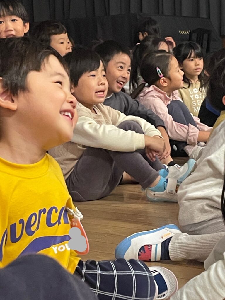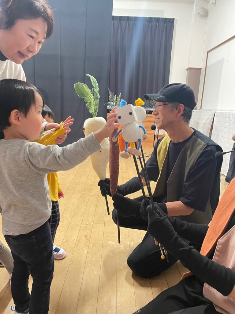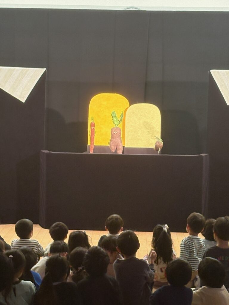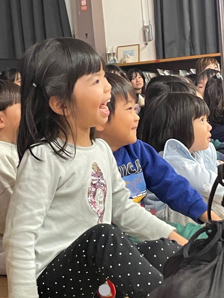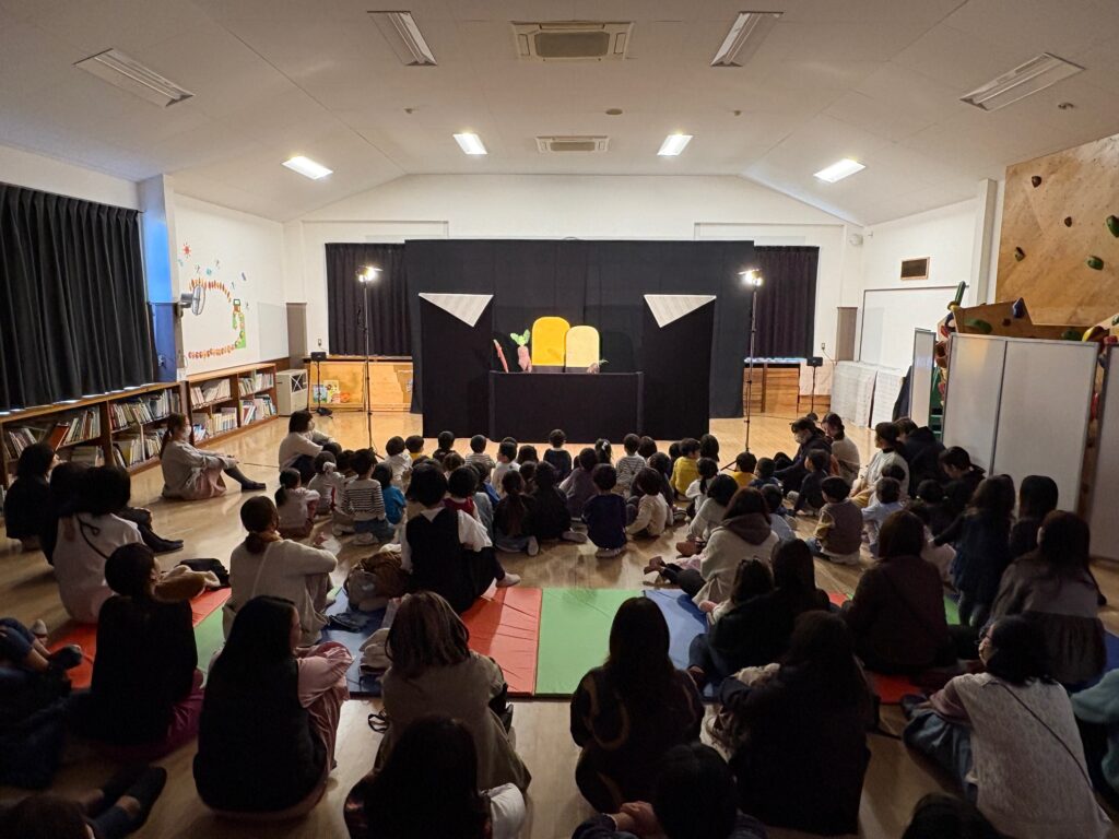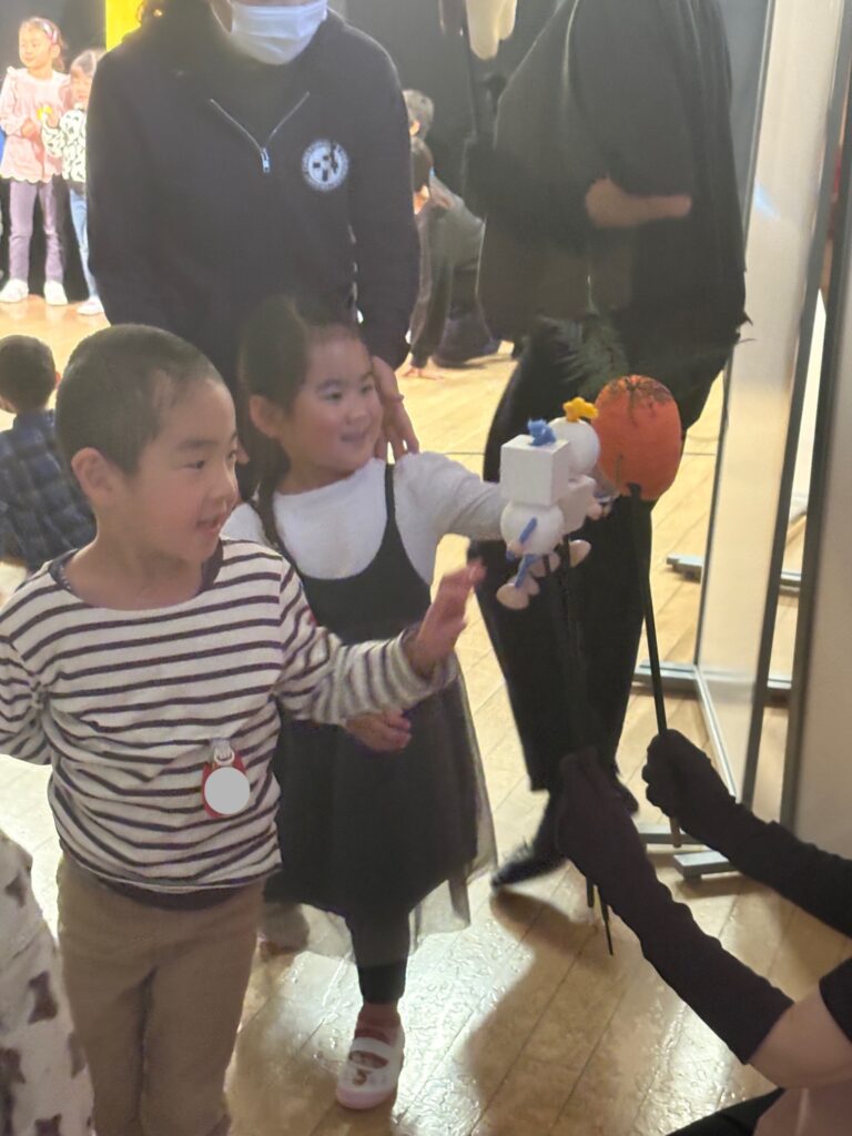 2025.11.6 てんたん人形劇場上演 ようちえん日記 2025.11.06 今日は楽しみにしていた人形劇の日♪てんたん人形劇場の方が来てくれました。かわいくって、コミカルな動きで子どもたちのハートをわしづかみ♡ ちょっとドジなところや一所懸命な姿に子どもたちの笑顔がこぼれます。 漫才のようなやり取りに 大笑い! お別れの時には子どもたちから手を伸ばして人形たちと関わろうとする姿が見られました✨ 楽しかったね😊てんたん人形劇場のみなさんありがとうございました♪