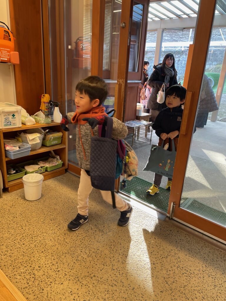 今日も子どもたちが元気に登園。