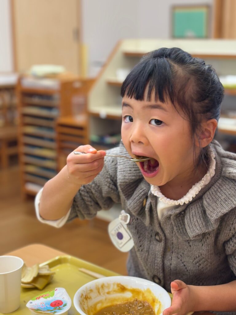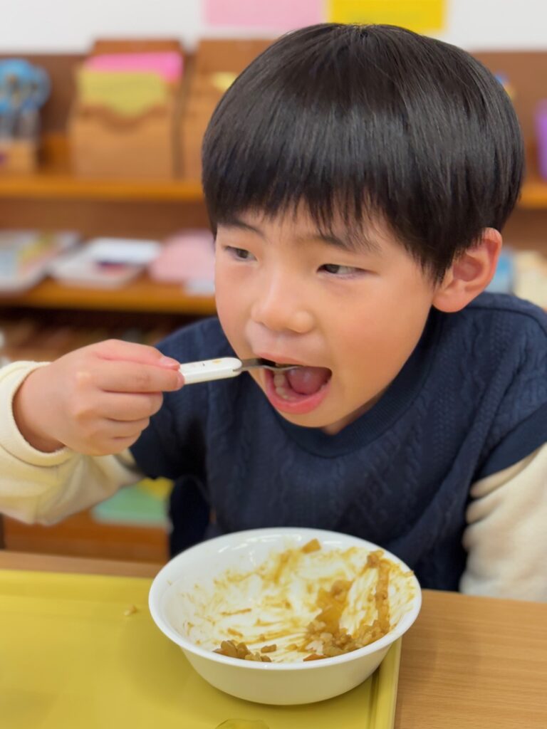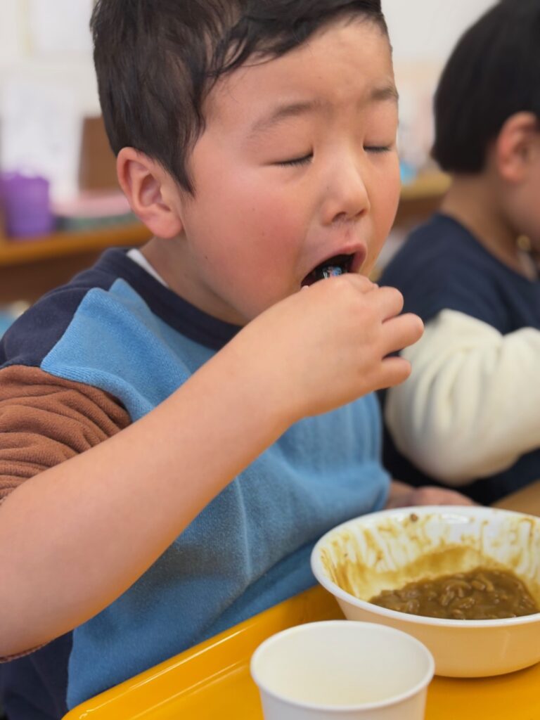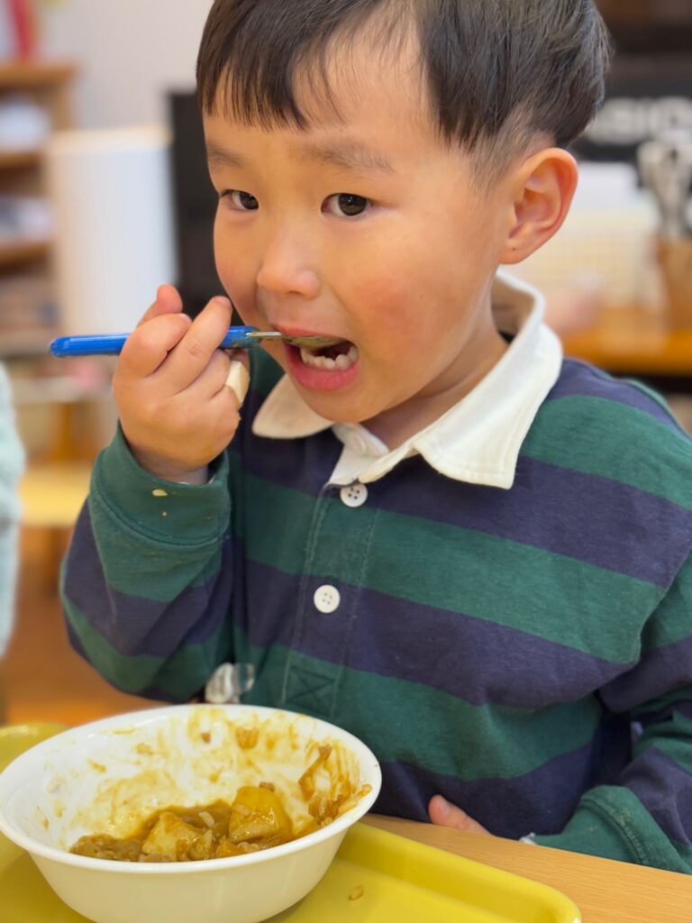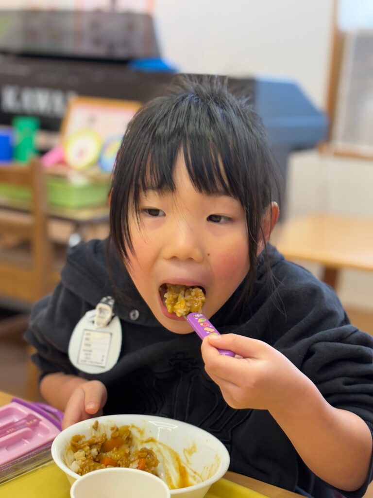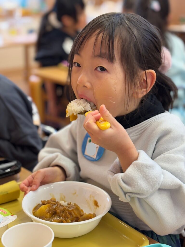2026.1.23 可愛い食べっぷり💛 ようちえん日記 2026.01.23 今日の給食はみんな大好きカレーライス♪今日は可愛い食べっぷりをお届けします。 全園児撮りたかったのですがなんとカレーを食べるのは早いこと😲追いつきませんでした💦どの子も大きな口でもりもり食べていて✨さすがカレー✨でした。