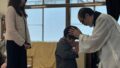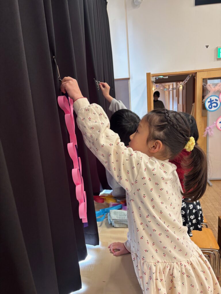 黄グループがホールの飾りつけをして