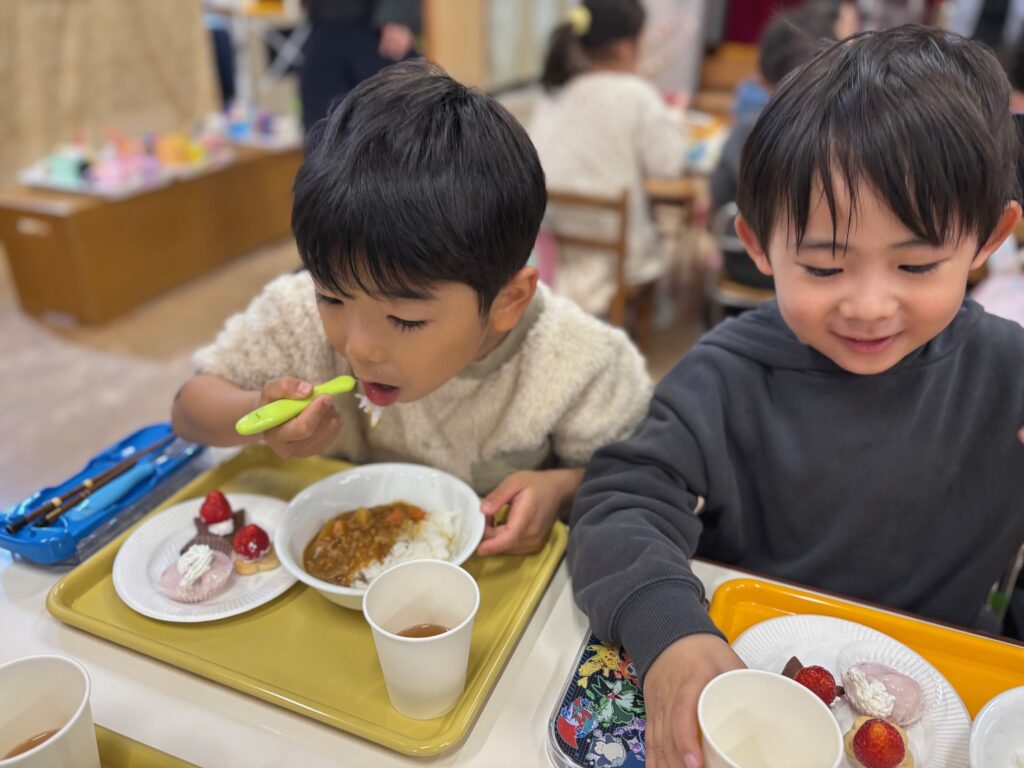 外で遊んだらみんなでランチパーティ。