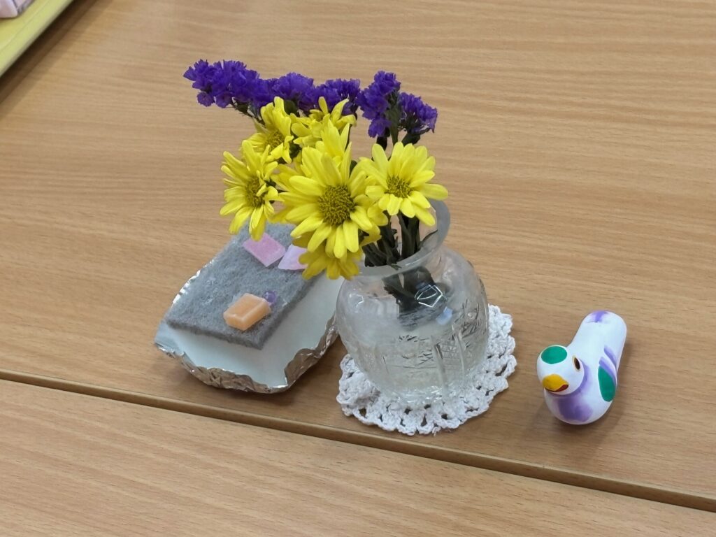 食卓に飾られた花にも