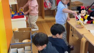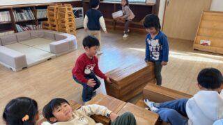 先日大型積み木で遊んでいた黄グループ。今日もホールで遊んでいました。今度はステージに物を運んで何やら準備中。作り上げたものは✨ジェットコースター✨ここからこうなってこうなります!自分たちだけじゃもったいないっていう意見が出てお友だちもお誘い...